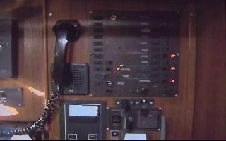 Le gros carré gris que vous voyez sur la photo est l'antenne de notre téléphone, que nous positionnons à l'extérieur à chaque utilisation. C'est un Thrane and thrane. |