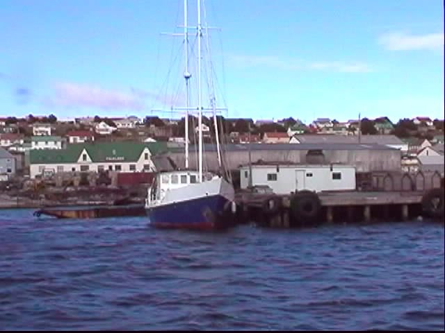 "Golden fleece", le bateau de Jérôme Poncet au quai à Port Stanley