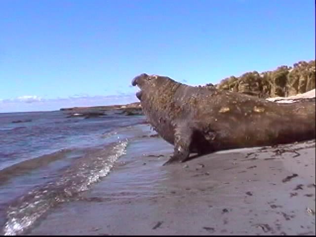 Bon, si tu t'approches, je me tire dans l'eau. Eléphant de mer à Bull Point.
